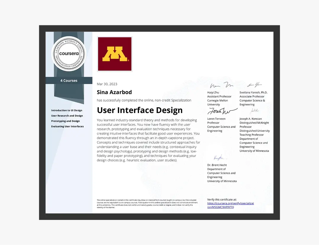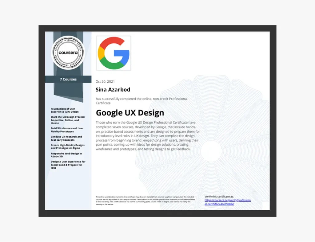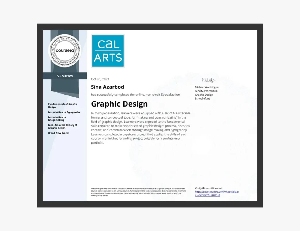 گواهی دورههایی که در زمینه دیزاین در آن شرکت کردم